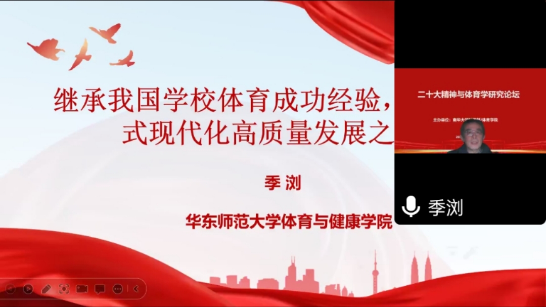 季浏教授以二十大报告的重要精神与我国学校体育取得的成功经验,以及中国学校体育高质量发展为主题进行精彩报告,认为我国基础教育体育与健康课程标准已经达到世界先进水平甚至领先水平。未来的关键是在教学实践中认真落实课程标准的要求,按照党的二十大报告精神持续推进和深化我国基础教育体育与健康课程改革,坚持走中国式现代化的体育与健康课程高质量发展之路。